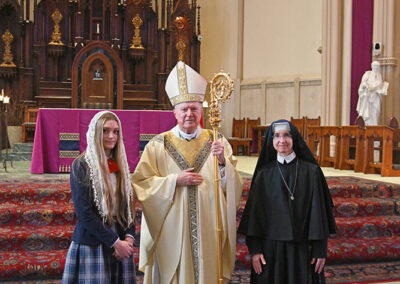 On the feast of the Annunciation, March 25, 2026, the Saint John the Baptist Pro-Life League was honored with the Ruth V. K. Pakaluk Pro-Life Youth Award by the Diocese of Worcester. Cecily Rochman, President of the League for 2026, accepted the award from Bishop Robert McManus during the annual Mass for Life at the Cathedral of Saint Paul in Worcester, MA.