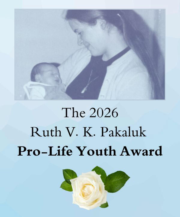 The Ruth V. K. Pakaluk Pro-Life Youth Award commemorates the late Ruth Pakaluk, a celebrated champion of the pro-life movement in Worcester whose cause for canonization was recently announced.